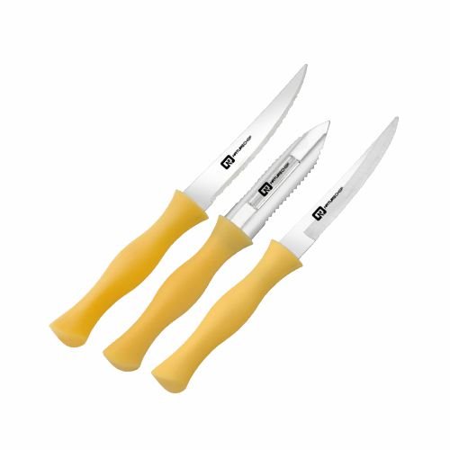 – This amazing knife set comes handy with day to day kitchen job. Made ergonomically in Stainless Steel each of them provide a proper grip.