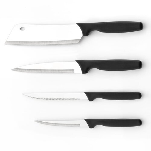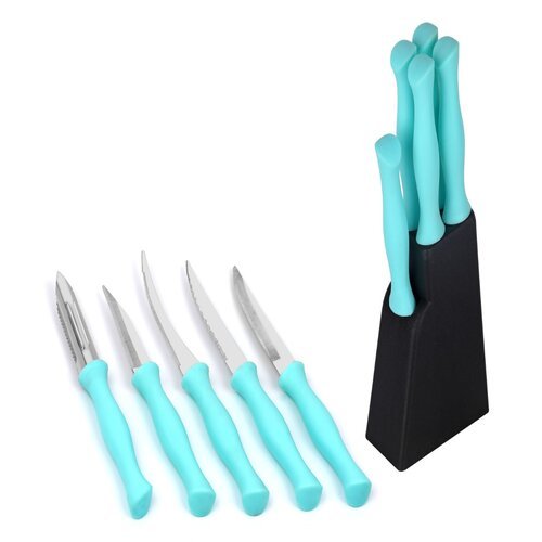 – Stainless Steel Blade The blade of each of the knives in this functional set has been made of stainless steel. The material is safe to use in the kitchen and offers protection against corrosion.